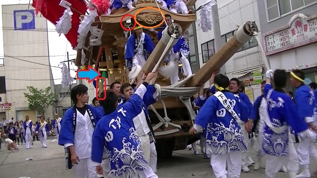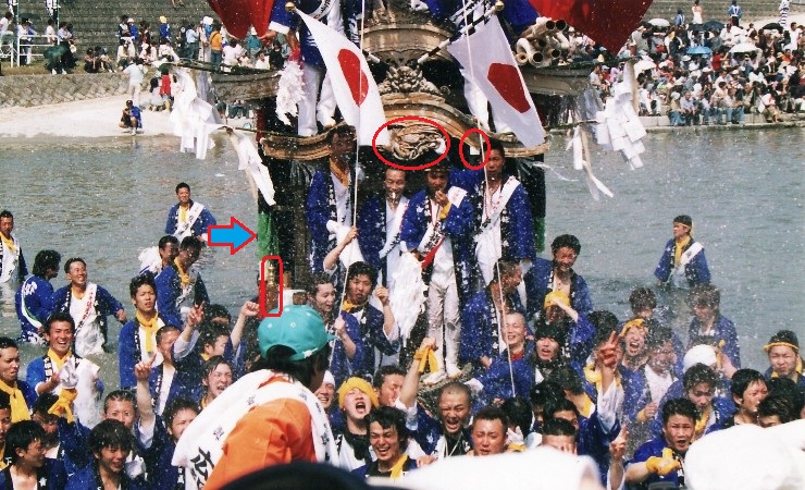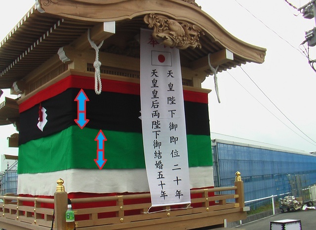 見分ける方法は、黒幕の幅が、緑幕の2倍くらいあれば1つ前の山笠です。