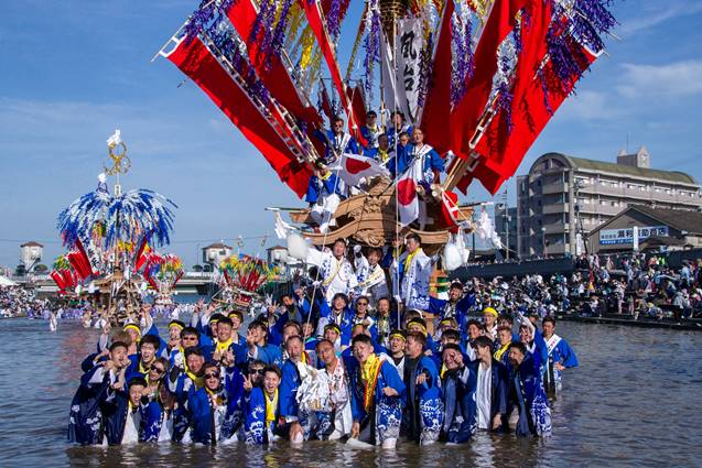 田川市伊田で風治八幡宮川渡り神幸祭が開催され